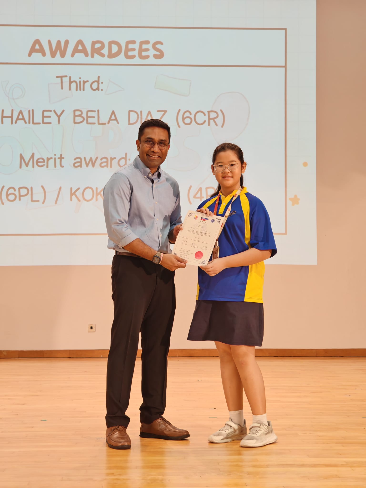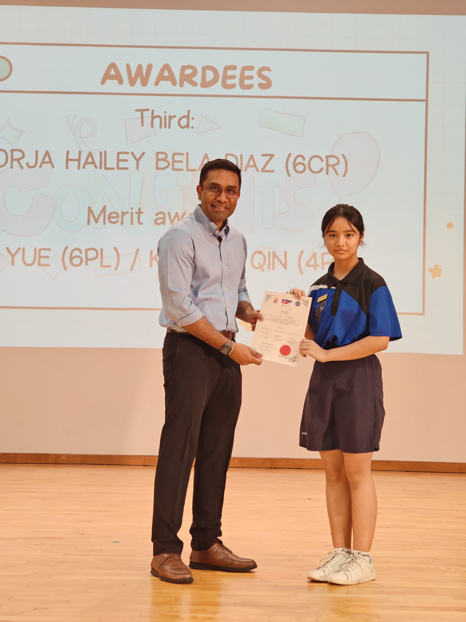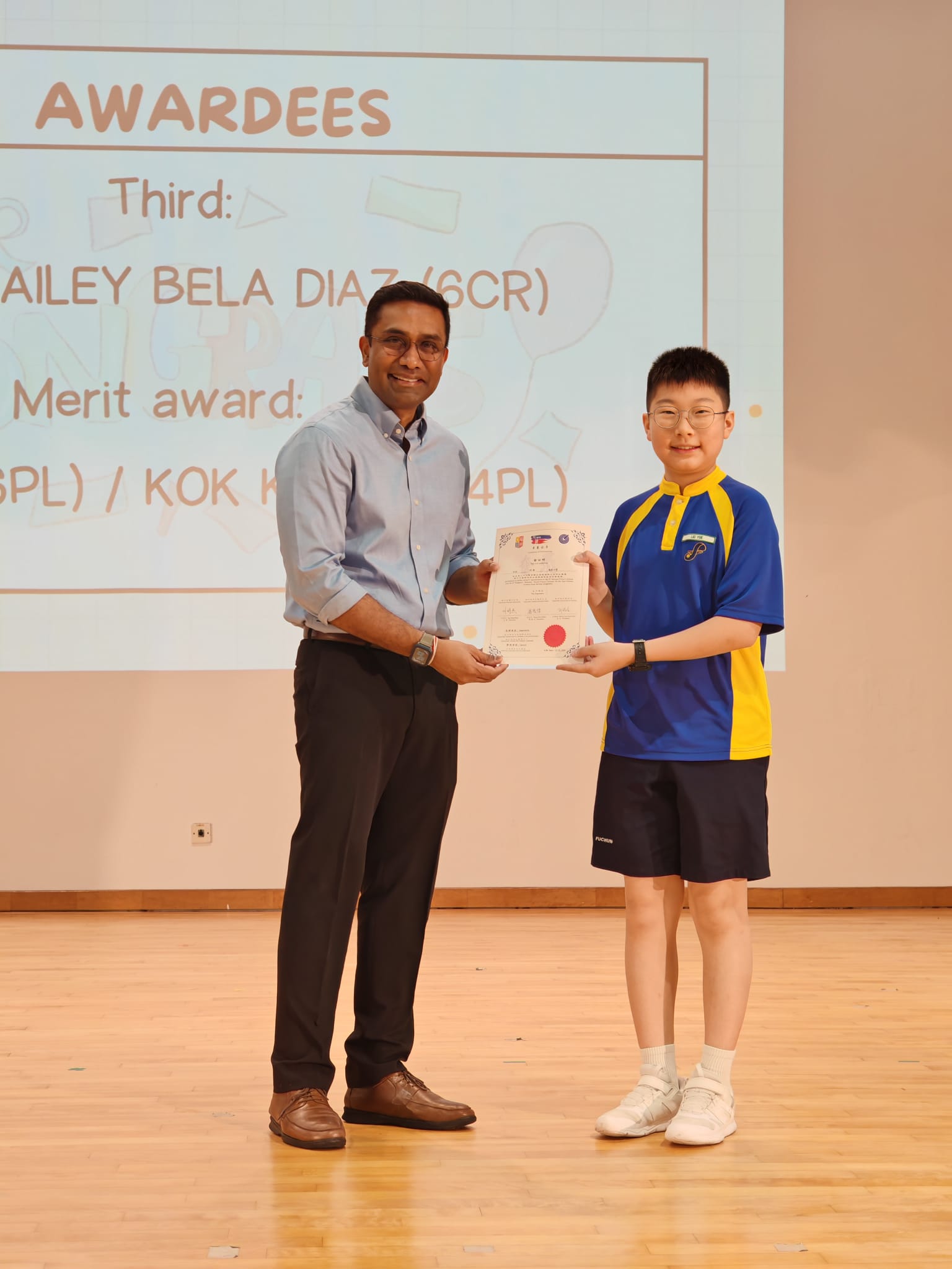 We are proud to share that Kai Qin (P4) and Liu Yue (P6) clinched the Merit Award, while Hailey (P6) secured Third Prize in their respective categories at the National Primary Schools On-the-Spot Chinese Creative Essay Writing Competition. A big well done to all our awardees for putting in their best and embracing the joy of learning!